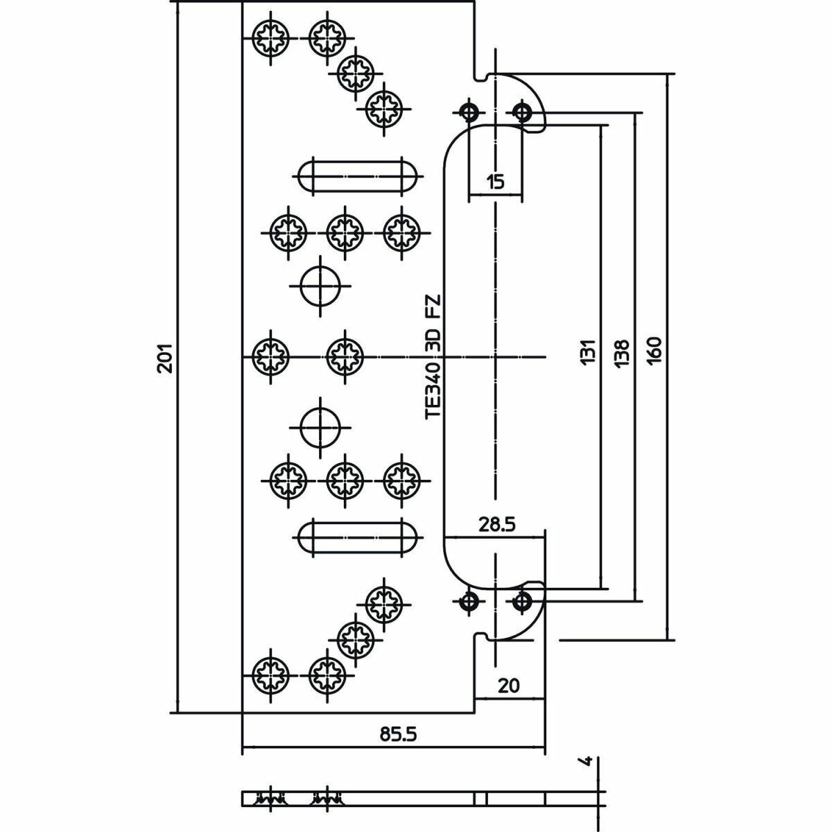 Záves Tectus TE 340 3D F1 pre bezfalcové reverzné dvere do 80 Kg - hliník (bal:2 ks)