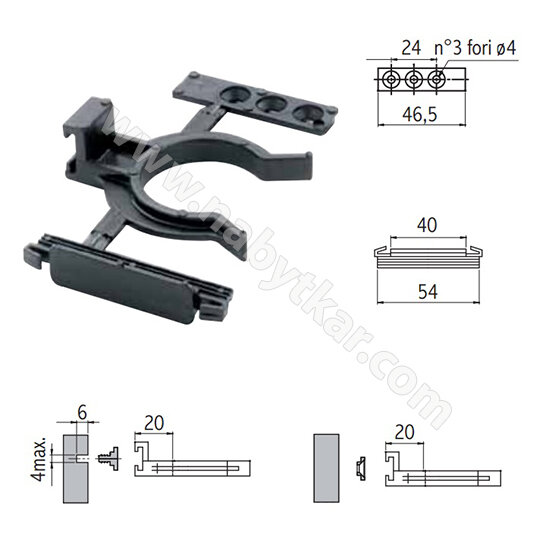 Klips pre nábytk. nohu a drevený cokel R5 BIG 500 Kg, čierny plast / Volpato