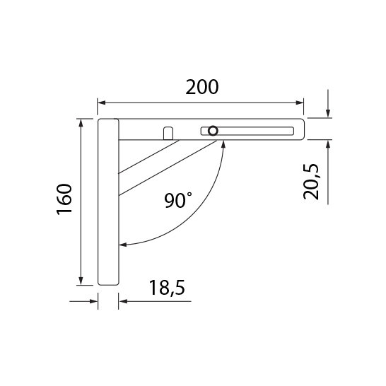 Uholník sklopný L-200mm, satyna