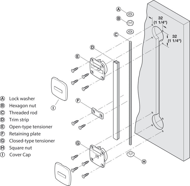 - Materiál: Závitová tyč: oceľ, napínač: zinková zliatina, krycí profil, krytky a prídržná doska: plast